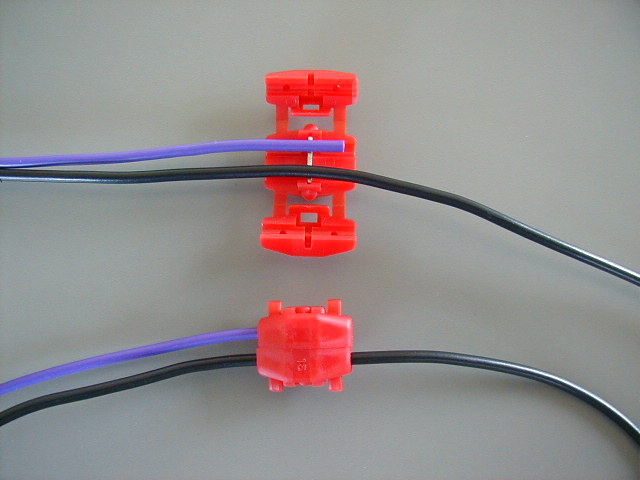 ■割込みコネクターとは? ・割込みコネクターとは、既存の線を切らずに別の線を結線するときに使用します。 ・既存の線をカットしたり被覆をむいたりする必要がなく、プライヤー(ペンチ)があれば とても簡単に接続できます。ビニールテープ等は不要です。 ・使い方は、写真のように既存の線(例:黒色)を片方のセンターに通し、その側のカバーを 閉じるようにプライヤーで挟みます。 ・次に黒線に接続したい線(例:紫色)をもう片方のセンターに通し、同様にその側のカバーを 閉じるようにプライヤーで挟みます。 ・どちらから挟んでもOKです。ただし、黒線はコネクターの両方に穴が開いている側に、 紫線は、片方が閉じている側にセットします。 ・このコネクターを使用すると配線後の見栄えがよく、とても早く作業することができます。 ・このリモコンを取付けるのにBENZで6〜8個、BMWで8〜10個、VOLOVOで6〜8個、 VWで8個、国産車で6〜8個必要です。 ・市販価格より安く販売していますので、一緒に購入されることをお勧めします。 |