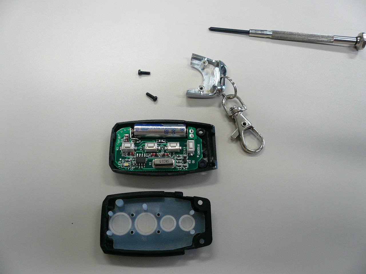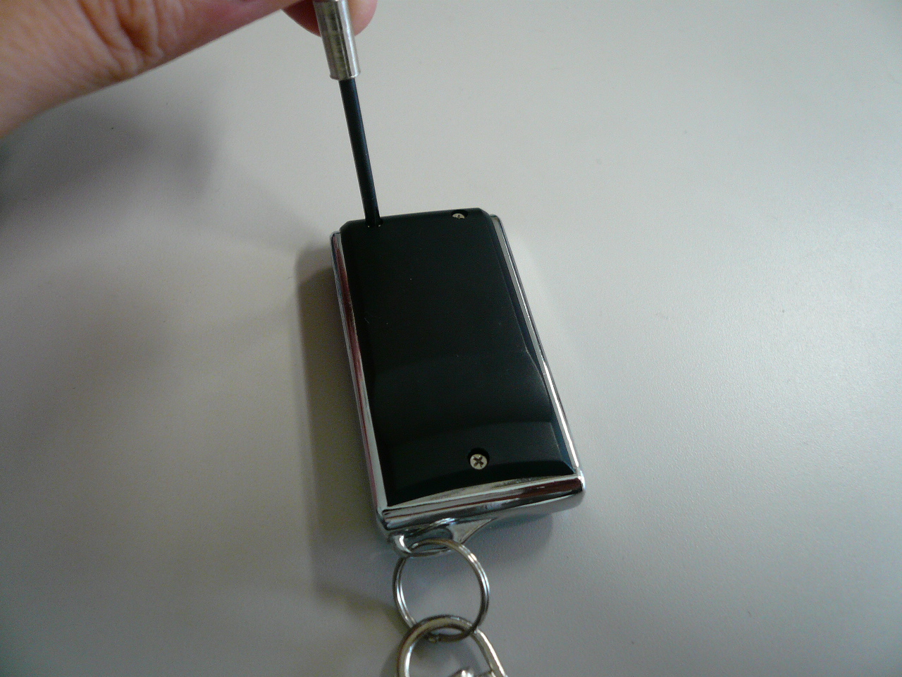 送信機を精密ドライバーなどで裏のねじ1本を開けます。